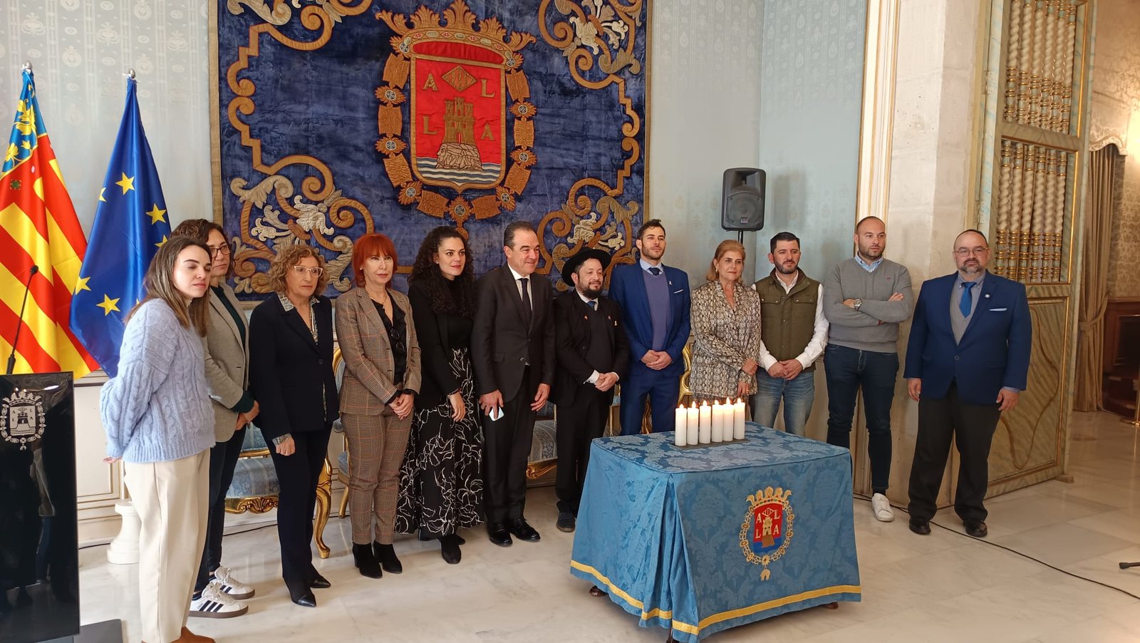 El vicepresidente de la comunidad judía habló sobre la persistencia de la discriminación hacia los judíos incluso 80 años después del Holocausto. El rabino pidió construir un futuro de esperanza y mostró una foto de tres niños de diferentes religiones caminando juntos en una calle de Alicante.