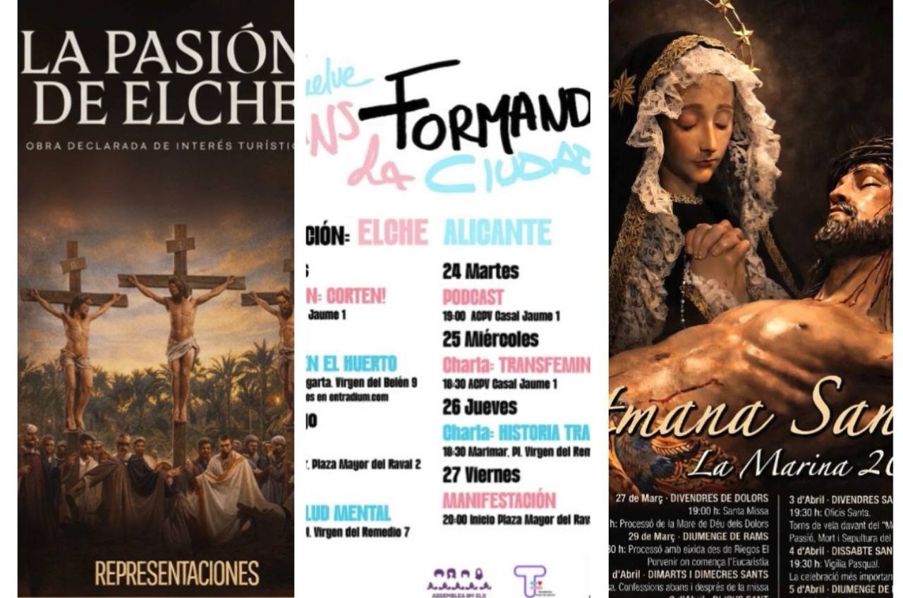 El día 27 de marzo a las 20:30 horas se realizará un Vía Crucis con el siguiente itinerario: Francesc Cantó, Pintor Sixto Marco, Pío Baroja, Guillermo Santacilla, Avda. De Santa Pola, Camí del Gat, Escultor Capuz, Velarde, Plaza de la Constitución, Pont dels Ortissos, Corredora, Plaça de Baix, Arco Ayuntamiento, Plaza Menéndez Pelayo, Major de la Vila, La Fira, Plaza de Santa María. Se ruega evitar circular hacia el evento.